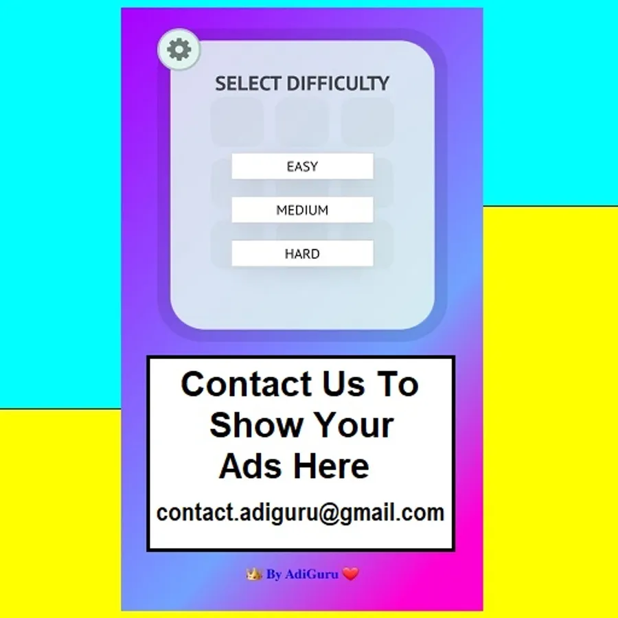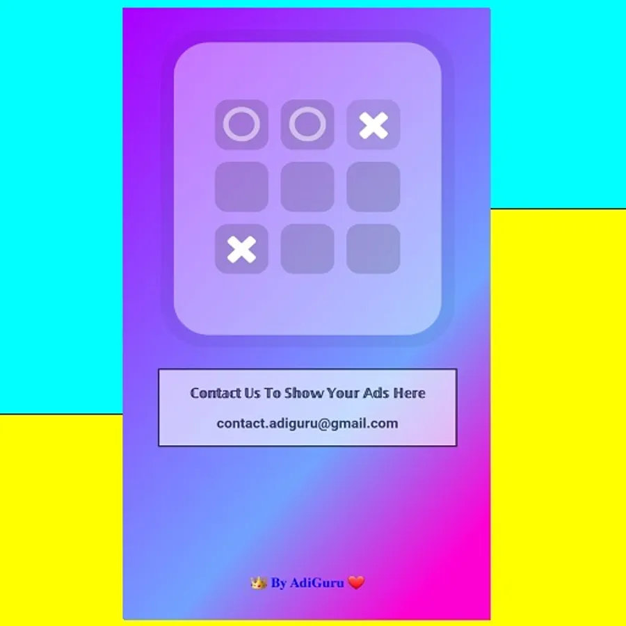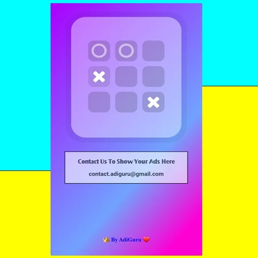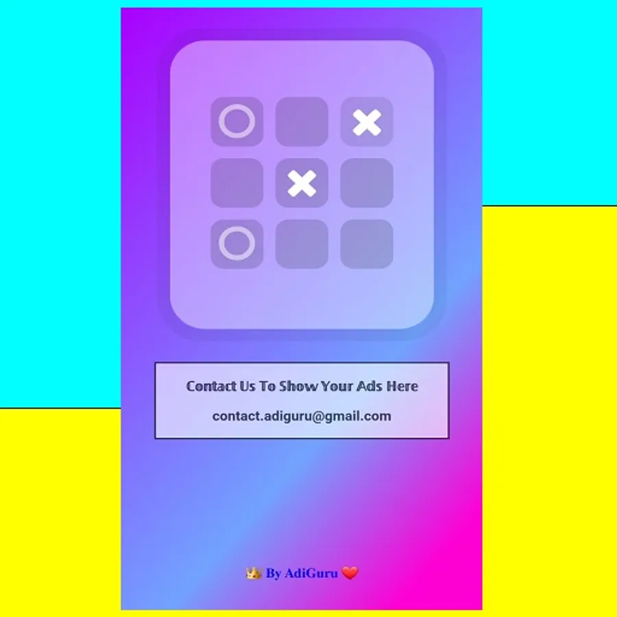 Download Tic Tac Toe (NEW) and play to spent your spare time. Contact us to post ads in moblie apps contact.adiguru@gmail.com