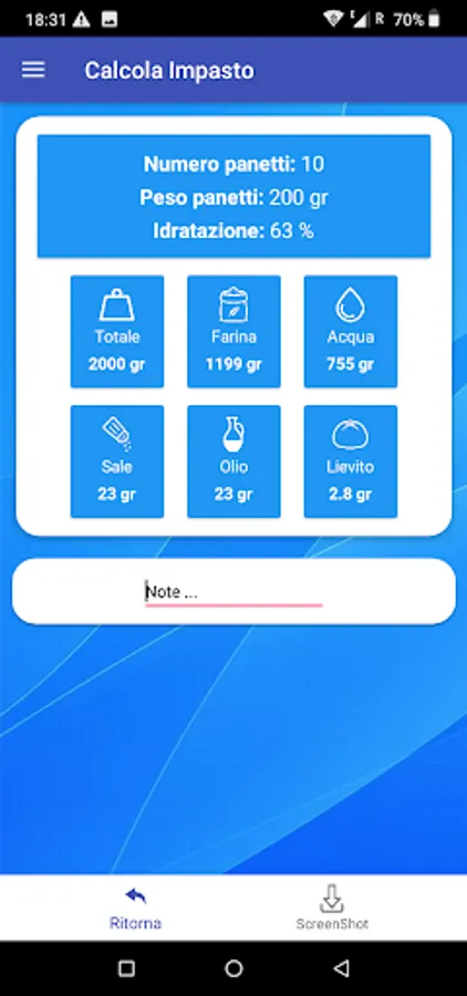 - Enter the quantity of the blocks and the weight you want to obtain, the App provides you with the exact quantities for a perfect dough