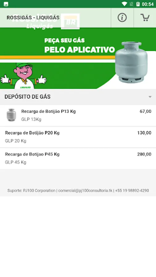 Application to purchase and refill gas cylinders. You select your product, register and pay only on delivery with cash or card.