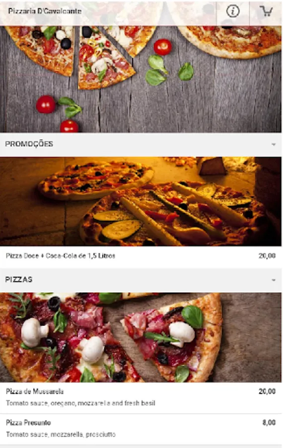 Application for customers of Pizzaria D'Cavalcante with Online Menu in the application. The customer will be able to see the location where the company is located and place orders with pickup on site and delivery via delivery.