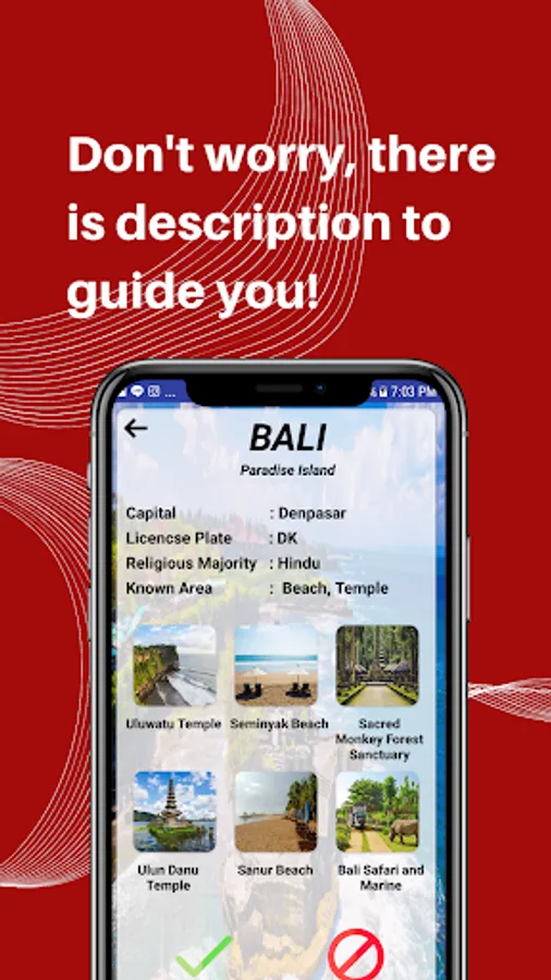 NAVI provides you everything that you need when you explore some regions in Indonesia. You can find a short description of the region that you stop by. The description includes the capital city regions, known places, even do and don'ts in there!