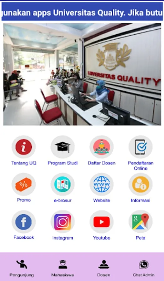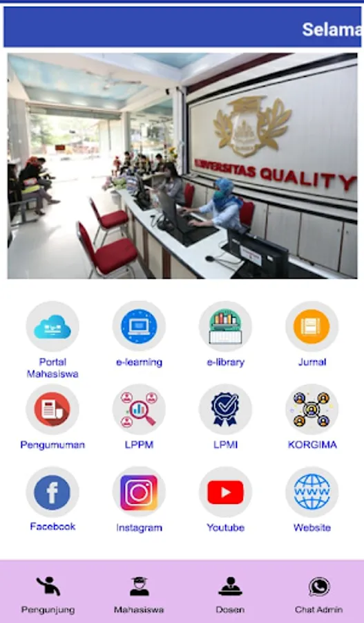 Complete and up to date information application about Quality University, also makes it easier for students and lecturers to access online facilities that have been provided with only one application.
