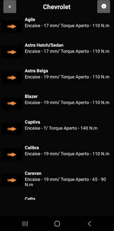 In this app you will have information about the correct torque for tightening the bolt or nut of a car wheel, use a torquemeter and make the tightening following the specification. Ideally, tightening should be checked monthly.