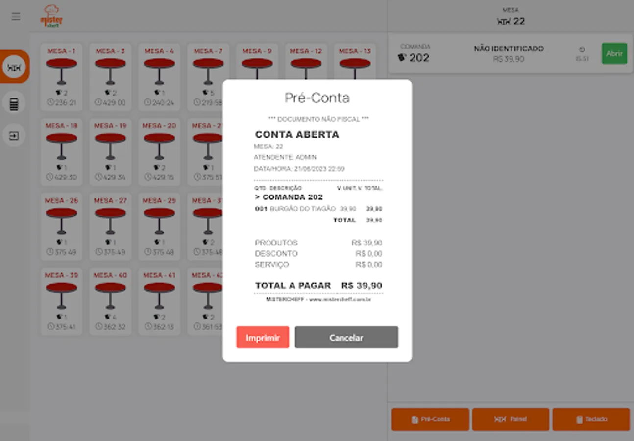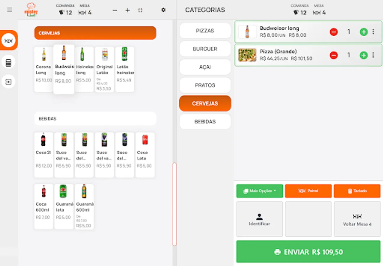 Mistercheff Garçom application is the perfect solution to optimize service in restaurants, bars and similar establishments. With an intuitive interface and advanced features, it allows waiters to place orders, send them directly to the kitchen or bar, track the status of orders in real time and ensure efficient service to customers. In addition, the app offers options to manage tables, commands and checkout quickly and securely. Increase your staff's productivity and provide an improved experience to your customers with our waiter usage app