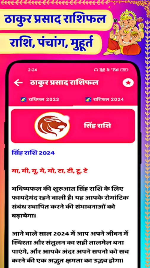 Thakur Prasad Rashifal 2024 Hindi Rashifal – Check your daily rasifal through this rashifal 2024 hindi app. ‘Rasifal 2024' app is a completely free app that provides accurate benefits for all zodiac signs i.e., Hindi Horoscopes by Astrologer of real time.