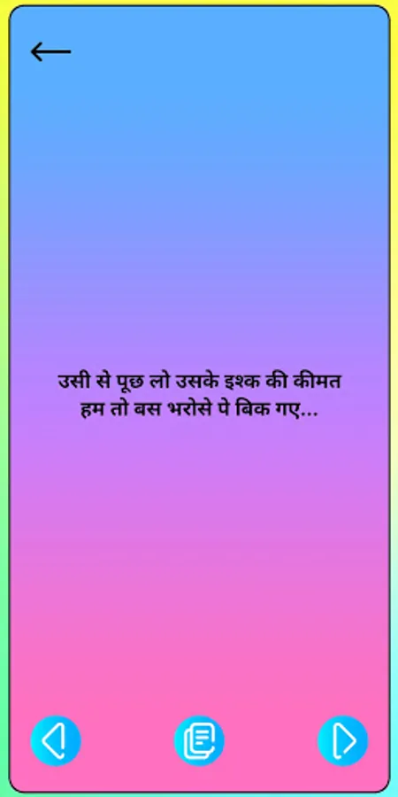 In This App There Are More 1000+ Sad Hindi Status Shayari And Sad Hindi Status. This App Is Made For Sad Shayari Sad Hindi Status Shayari Lovers And If You Are Hindi Shayari Lover Or Hindi Status Lovers Then Is App Is For You.