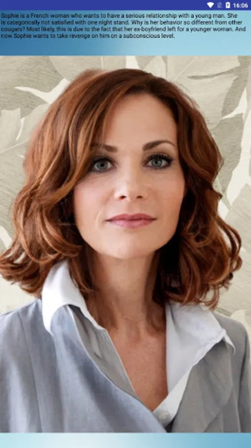 What are cougars talking about in Mature Virtual Girlfriend (Texting App Game)? It depends on you. Each virtual girlfriend has her own photo and biography. Read their descriptions carefully. So you will understand what character this cougar has.
