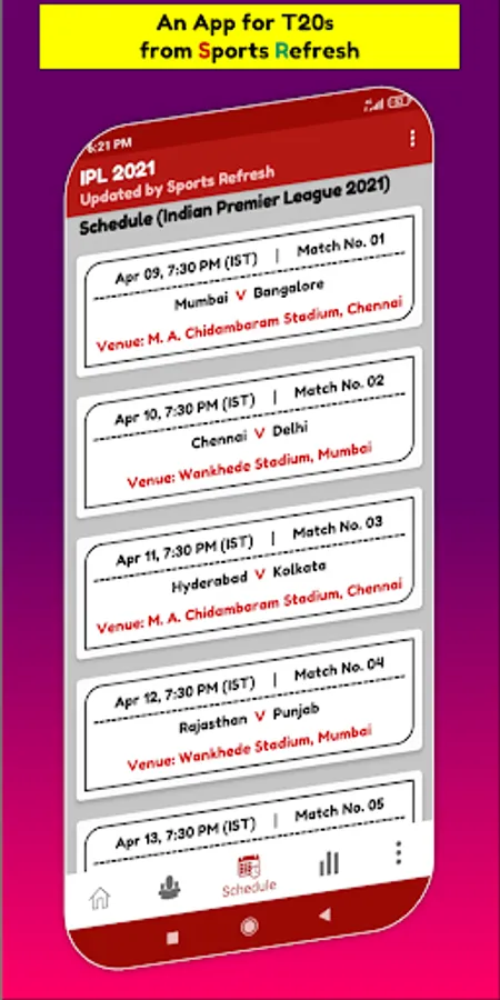 Cricket Matches Schedule for IPL 2022 (Indian Premier League 2022) & many more.