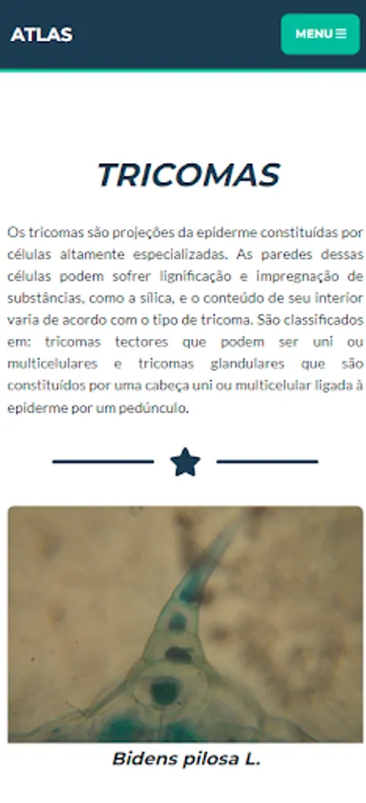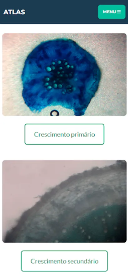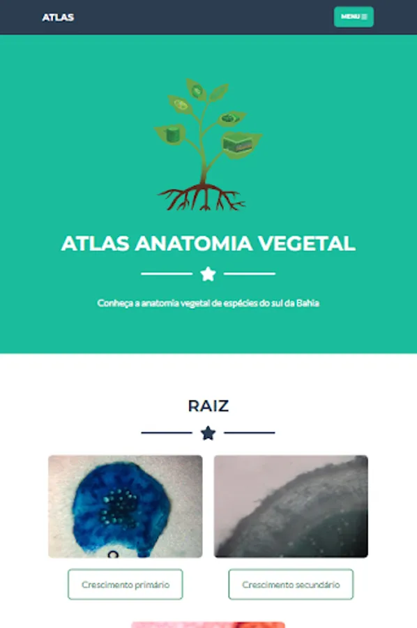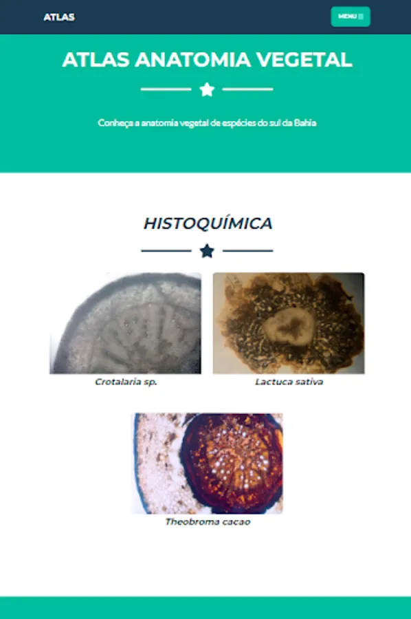 The Digital Atlas of Plant Anatomy application was developed to support the teaching of contents related to the area of Structural Botany. With the development of this application, it is expected to offer the student a certain mobility of study, in which he will be able to access the Digital Atlas anywhere using a device with internet access, in addition to assisting in the studies of the discipline. The application presents photographs of cells, tissues and organs observed in the optical microscopy of plant species from southern Bahia