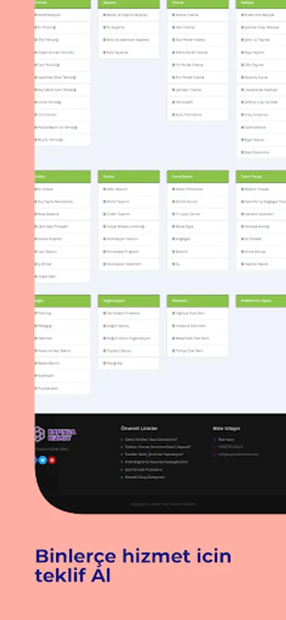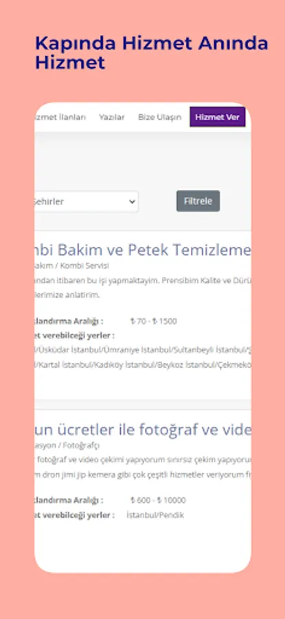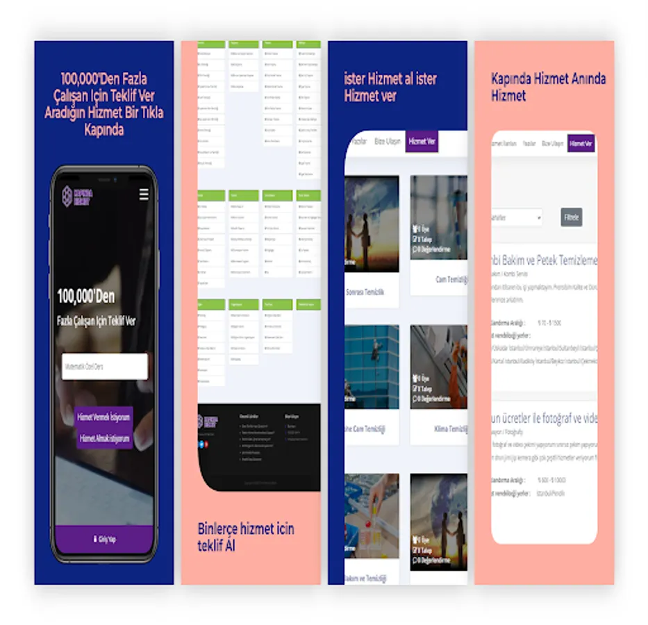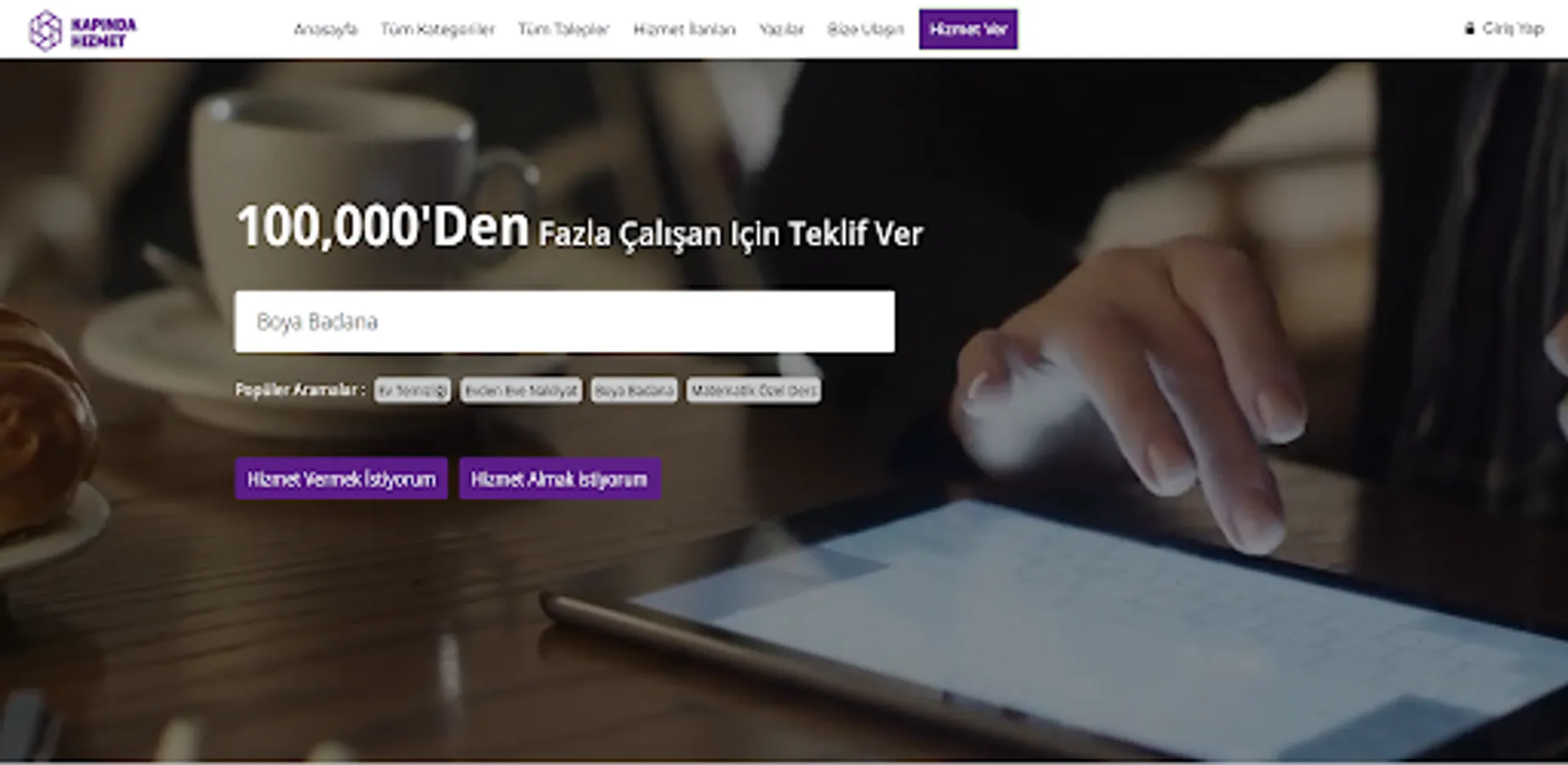 Service at the Door; It provides services all over Turkey with more than 350,000 service providers in more than 2010 categories including transportation, cleaning, renovation and paint and whitewash.