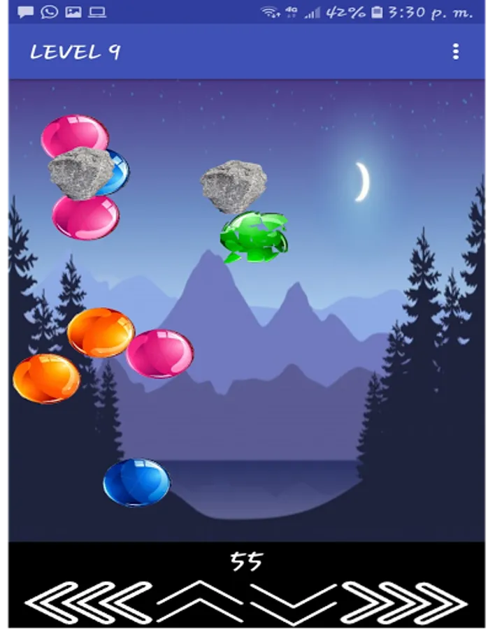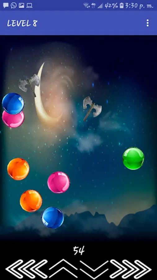 It is an entertainment game with colored balls. To win the game the player must keep the main ball without contact with the others for one minute of the current time. During the development of the levels, gifts and objects appear that help to keep the player free from contact with the other balls.