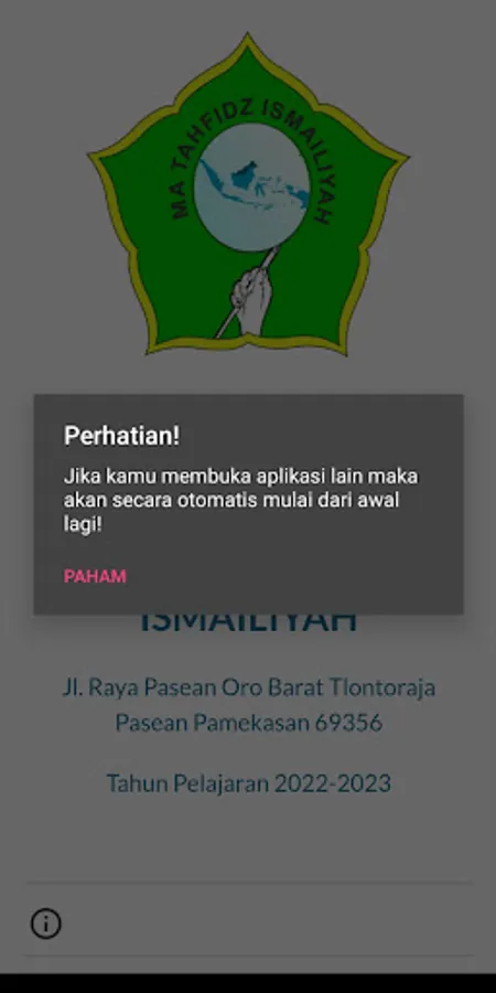 The application was designed by the Tahfidz Ismailiyah MA IT Team, designed in a simple way to facilitate effective, economical, efficient Madrasah Exams and Assessments, and can be used via Android cellphones online and safe from cheating. so the results are fast and accurate.