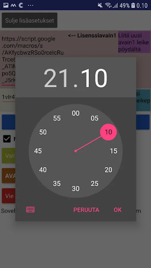 In addition, the app uses an Internet connection to transfer barcode data to a Google Spread Sheet and read the spreadsheet. The application locally stores a few application parameters, such as the license keys in the table and some access settings, in the application's own directory. Speech recognition texts are processed slightly inside the application.