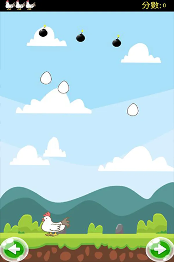 Eggs of different colors have different effects. Players operate the rooster to dodge bombs and receive high scores for eggs. Open different endings.