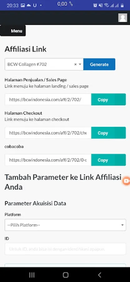 The Bcw BCW Collagen application is an application to make it easier for members to make orders or take affiliate links that are in it
