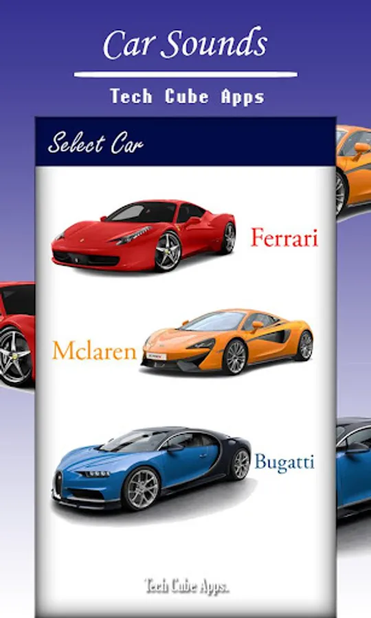 Application will let you let select sports car from the list of amazing car