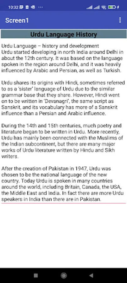 this app cantain the history of urdu language .urdu is the national language of pakistan and it is spoken in many part of world