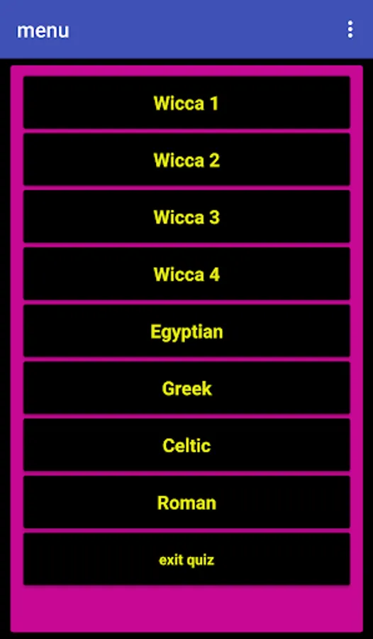 Multiple Choice sections include Wicca, Roman, Greek, Egyptian and Celtic Mythology.