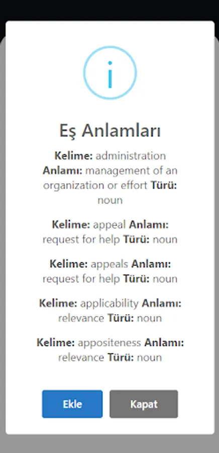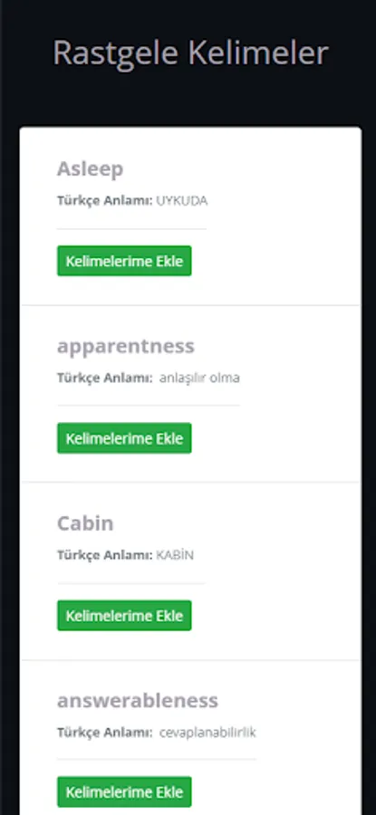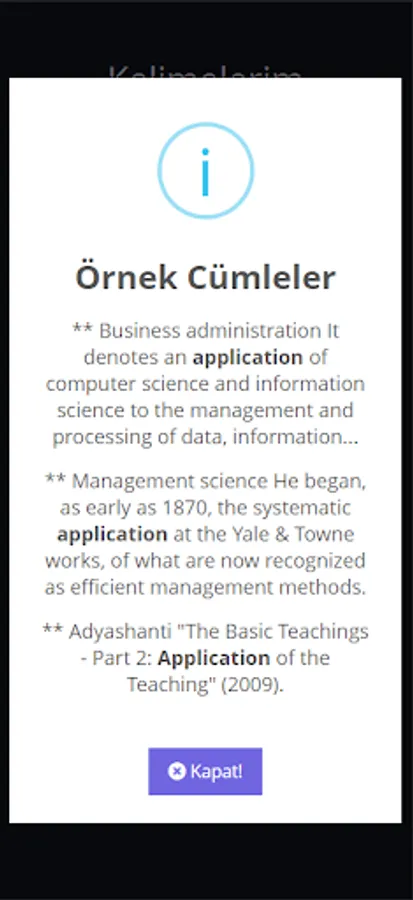 This application allows you to record the English words you have learned and list them whenever you want, reinforce them with sample sentences containing the words you have learned and access your words whenever you want. It will help you to memorize words especially in YDS or Yökdil exams.