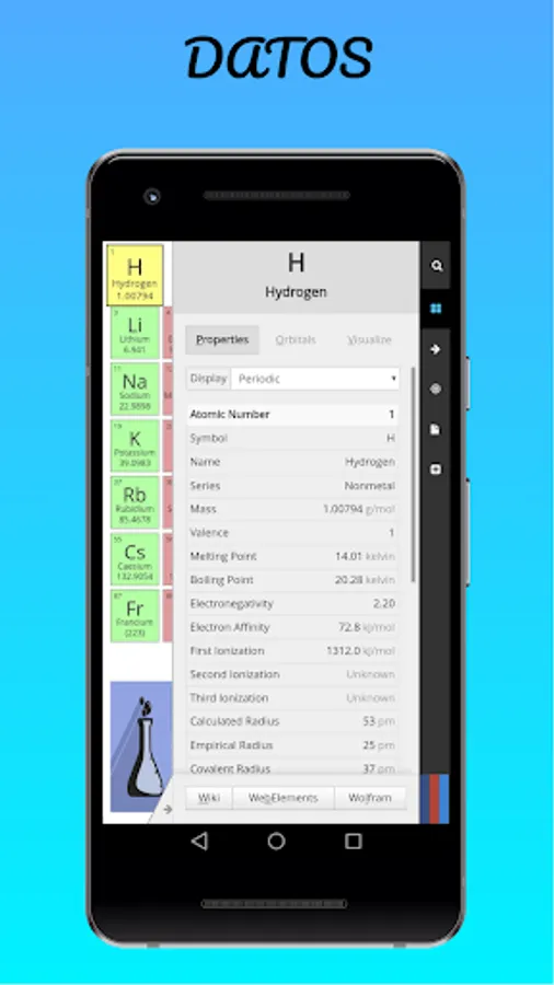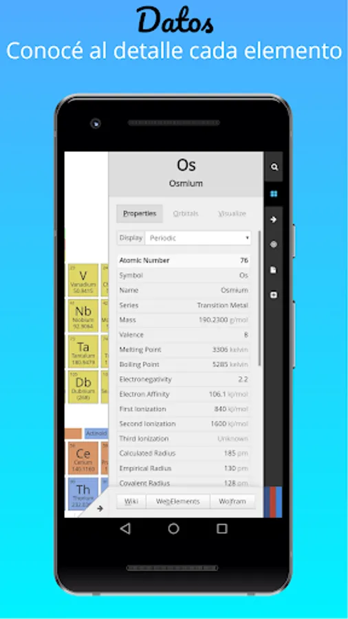 The TPI Interactive Periodic Table application also incorporates detailed data on each element of the table, constantly updated such as: melting point, boiling point, valences, mass, among other properties.