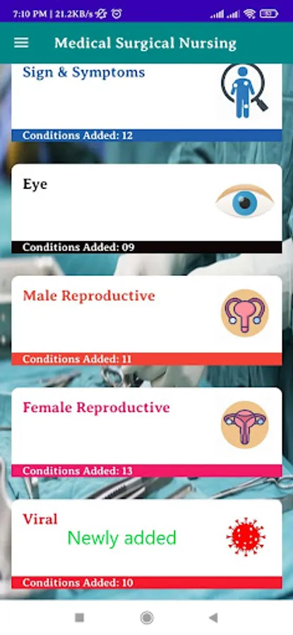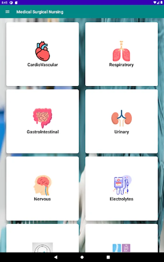 This Application will help students/Nurses understand the concept of disease, disease process and management of the disease. Students/Nurses will be able to take knowledge and develop information on various medical-surgical disorders and diseases