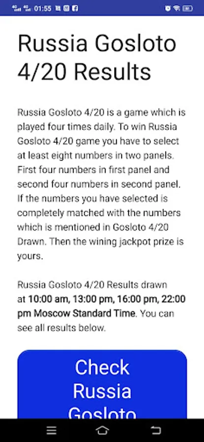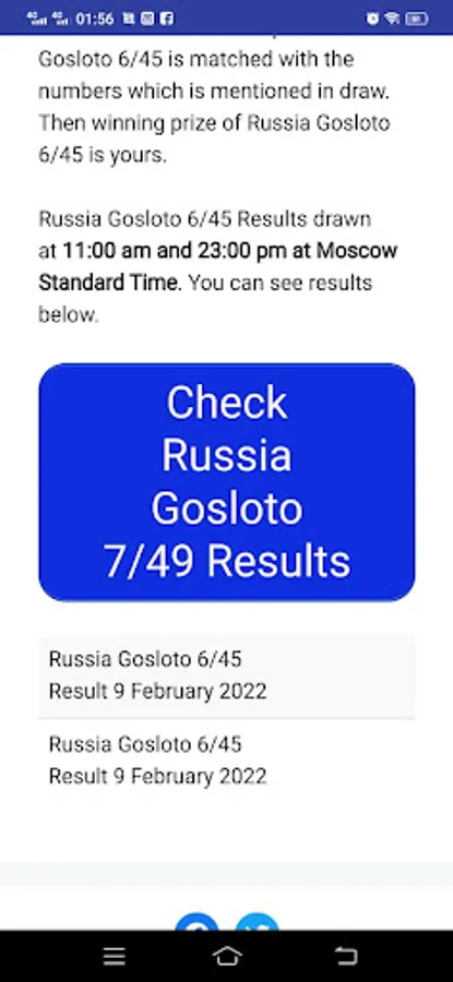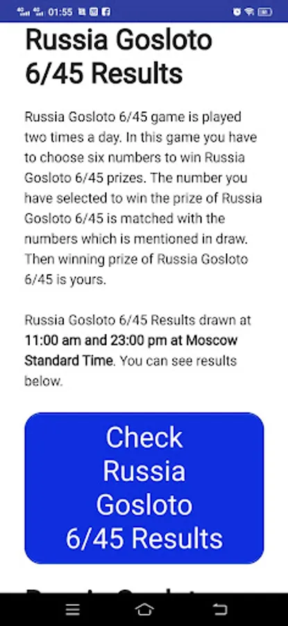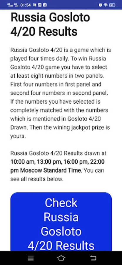 Russia Gosloto results update the latest Gosloto results 4/20, 5/36, 6/45, 7/49 directly to your device. You can select your favorite draw and it will notify you as the results are announced.