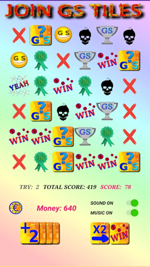 Try your luck while avoiding the bombs. You will have 36 boxes, 18 possibilities, 2 types of bonuses, so play your game well to collect as many pairs as possible and climb the leaderboard. The accumulated score will allow you to get coins to use for bonuses, prepare your strategy.