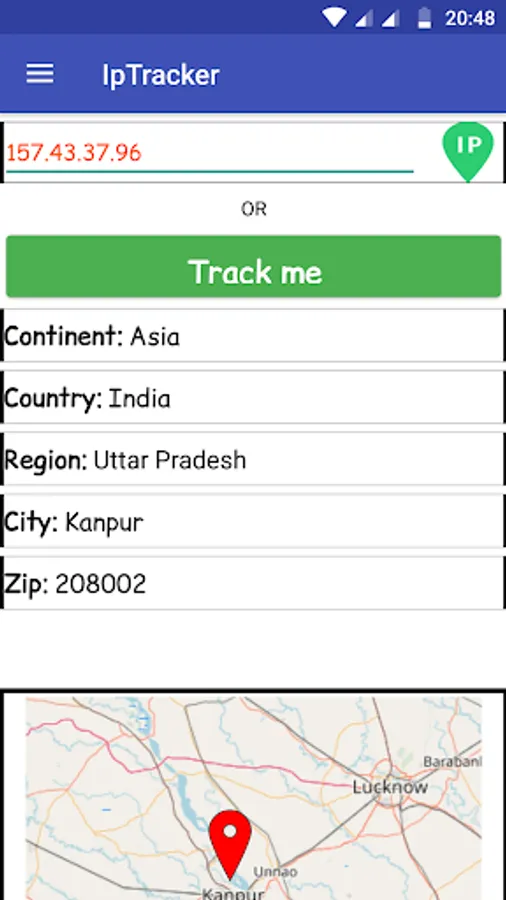 IpTracker can track any Ip address including current location of that Ip address. Also you are provided a one touch tracking facility with map support.