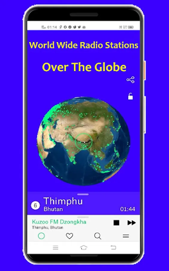 Radio Garden Lite will keep playing, even if your phone and you goes to sleep. All Radio stations tune in just one tap of your finger from all around the Globe