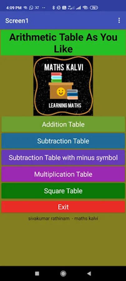 This application is very useful for kids and teachers to teaching basic arithmetic operation such as addition, subtraction, multiplication and square