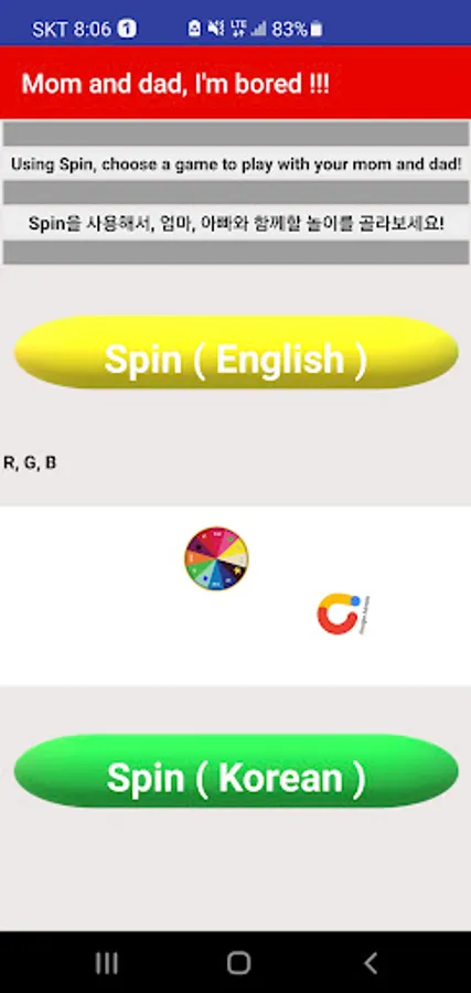 It is an app that uses spin to choose a game with your mom or dad when you are bored.