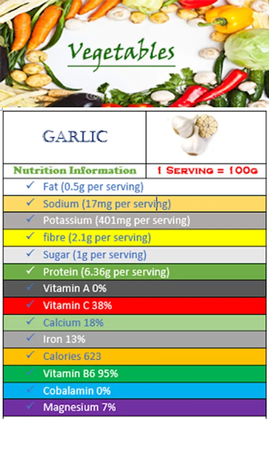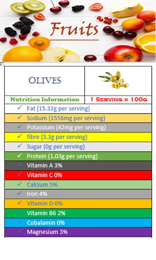 Right balance of nutrients meal with exercise means healthy life. You know which nutrients are good for you. this app will show you which fruits and vegetables have those nutrients. For example, vitamins (vitamin B1, vitamin B2, vitamin B6, vitamin C, vitamin K), manganese, potassium, phosphorus, calcium, iron, Folacin, zinc, copper, sodium, minerals, fibre, fat and water are all nutrients. do not look for gold here, gold is not nutrient. this app will show you which fruit or vegetable contains how much nutrient per serving. after that by using a simple calculator you can estimate nutrients in your meal. know the weight (gram, ounce, pound, kg) of your fruit or vegetable then divide it by per serve, you will have the exact information of nutrients that fruit or vegetable have.