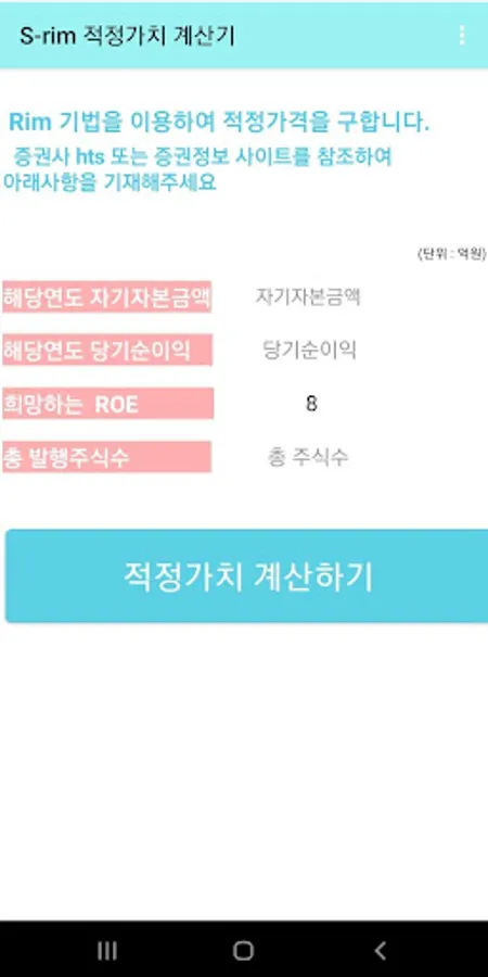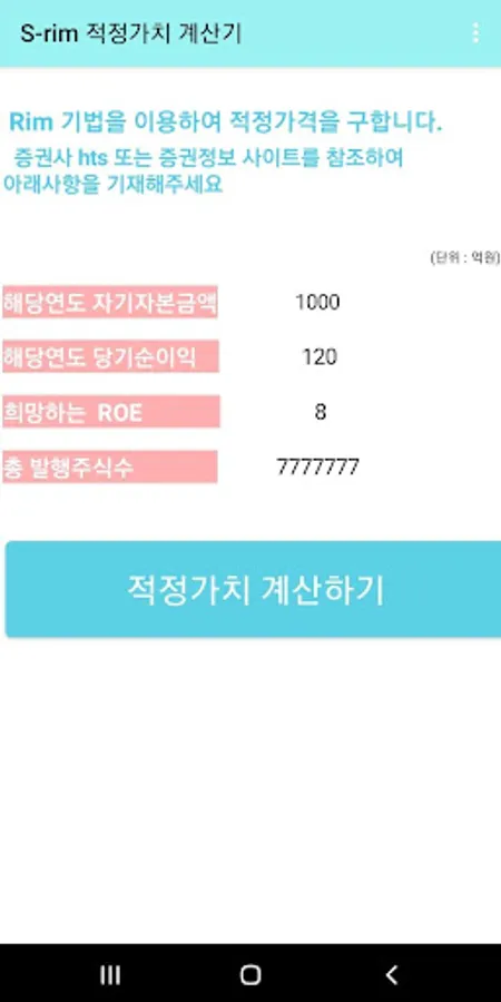 4가지 항목만을 입력하여 해당 종목의 적정가치를 구해보십시오!
