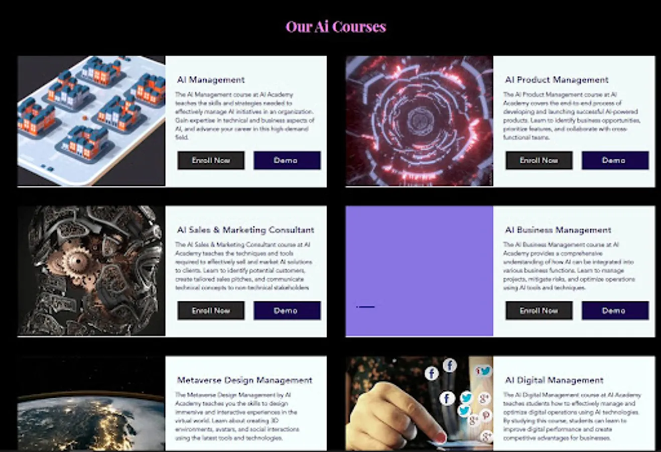 Our curriculum is developed by industry experts and renowned AI practitioners who bring their real-world experience and insights into the learning process. We cover a wide range of topics, including machine learning, deep learning, natural language processing, computer vision, and AI ethics. Each course is designed to provide a balance between theoretical concepts and practical applications, ensuring that learners can apply their knowledge to real-world scenarios.