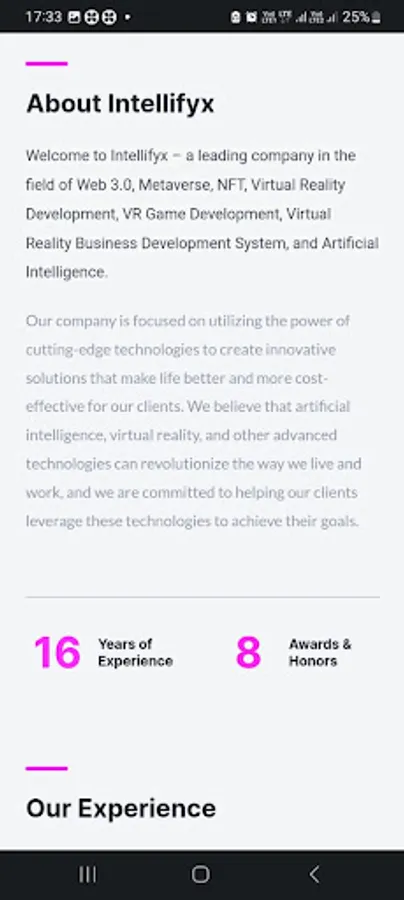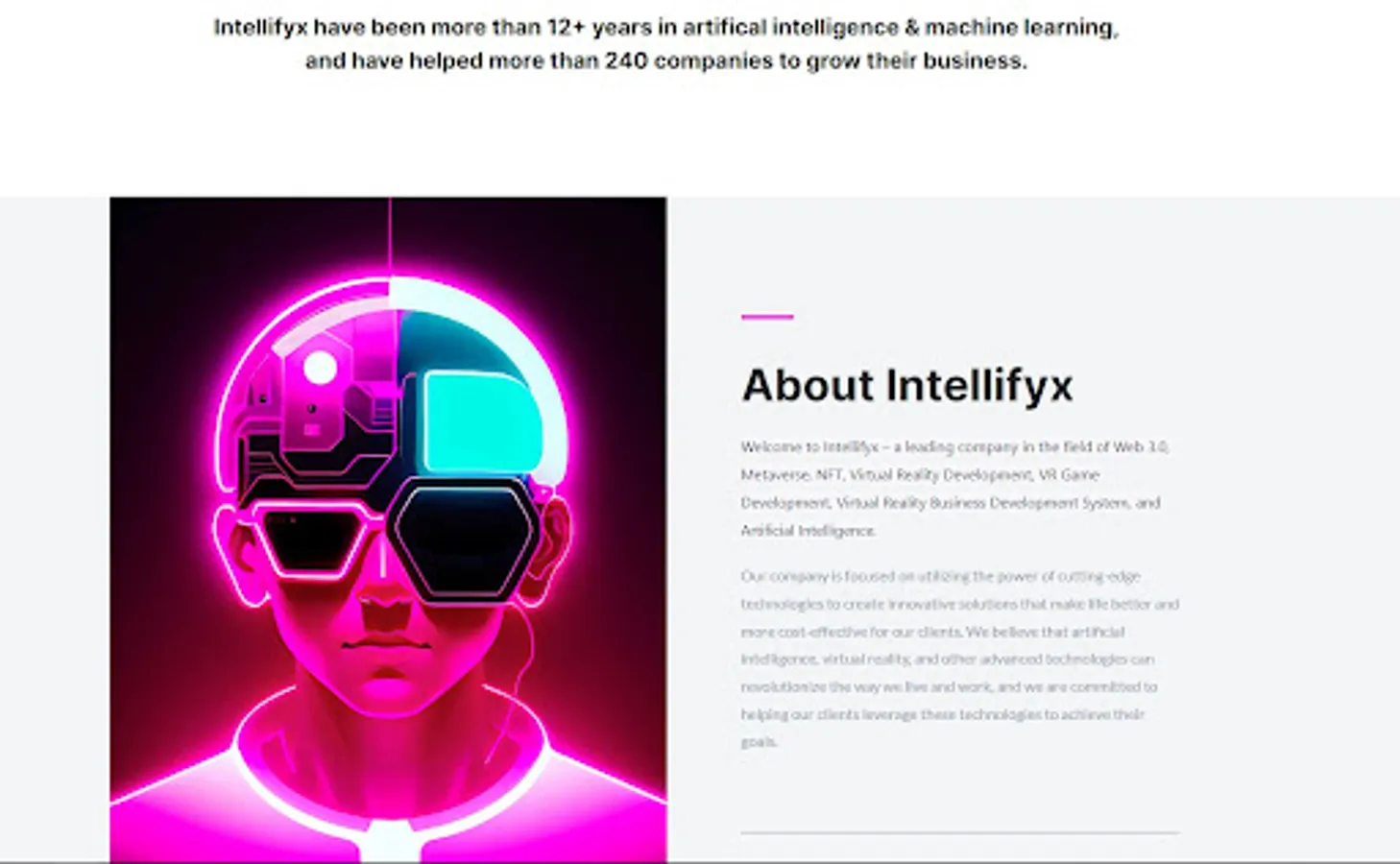 Intellifyx Ltd. is a leading technology company at the forefront of the artificial intelligence (AI) revolution. With a strong focus on leveraging AI-driven solutions, we empower businesses to unlock the full potential of their data and drive intelligent growth.