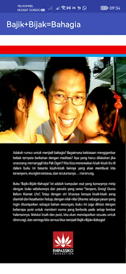 This "Benevolent+Wisdom=Happy" book is a collection of essays whose concept is similar to the previous book by the same author: "Smile, Dong! The world is not yet the end, you know." Still with its trademark, stories taken from everyday life, with values the value of Dharma as a message to be conveyed as a material for reflection, this book is also decorated with several poems to give a different color to each page. Through stories and poetry, we will find something to ponder, and may we all be Virtuous+Wise=Happy!