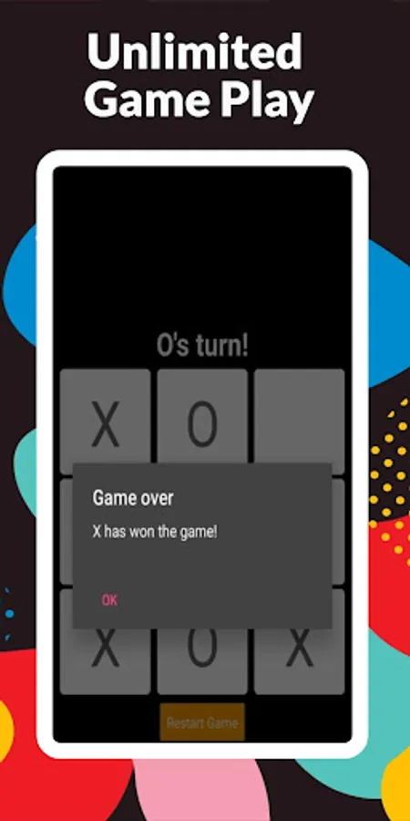 Start playing Free Tic Tac Toe game on your Android device.TicTacToe game has black game play skin and you can enjoy playing the TicTacToe game for free.