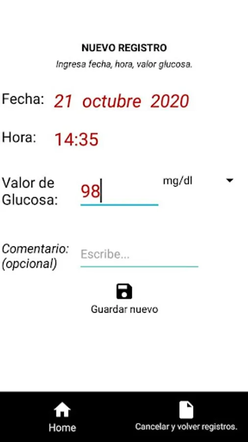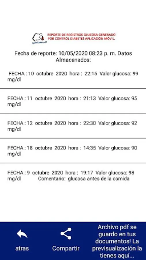 Useful mobile application to store daily records of glucose measurements in diabetic and non-diabetic people.