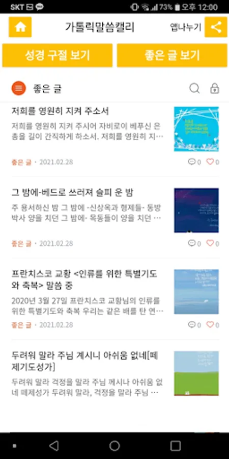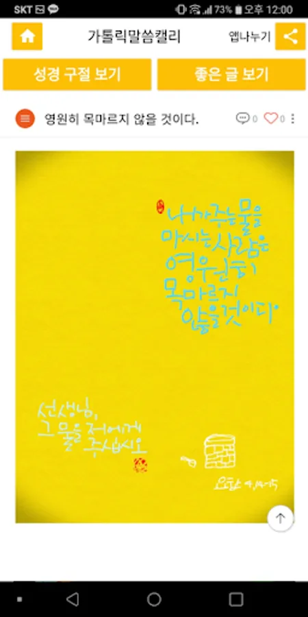 ○'Good Writing' is a place where words or phrases are selected and written in calligraphy from good texts such as prayers, Catholic chants, youth chants, Catholic saints or pope's words, and homily.