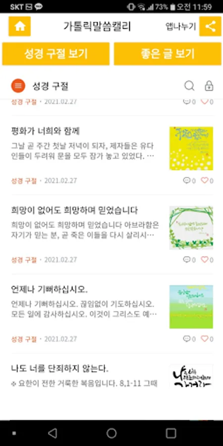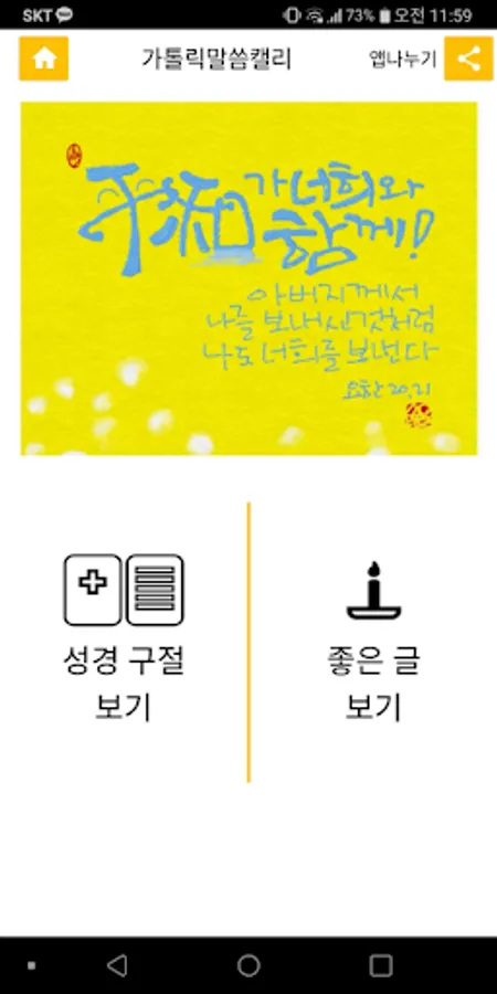 ○'Bible Verse' is a place where the Old Testament and New Testament Bible verses of the Catholic Bible are written in calligraphy.