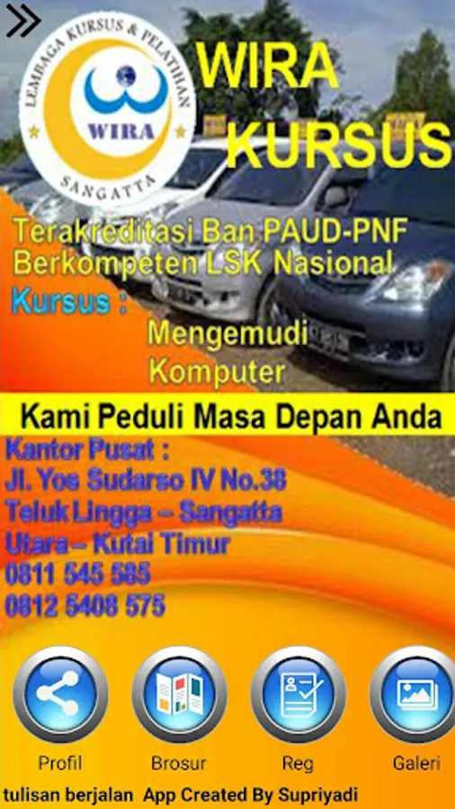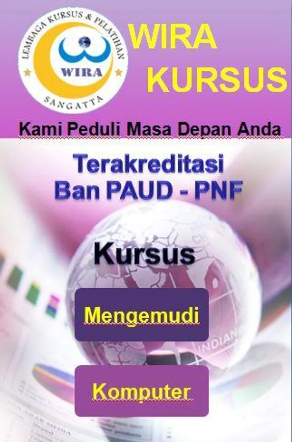The application for LPK Wira Course is Kutta Timur, can be used for student registration, see the Driving, Computer and sewing course brochure and see the profile of the institution