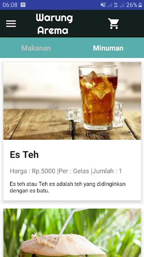 Beverage: Coconut Ice, Iced Tea, Pulled Tea, Orange Ice, Coffee, etc.