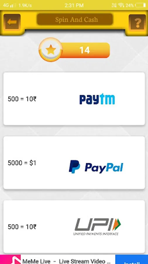 Spin the wheel and open your luck chance to win points. You will get unlimited spins in this app
