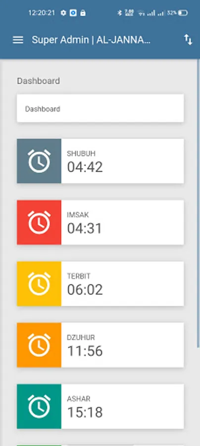 The Digital Prayer Time Schedule functions to display a five-time prayer schedule that changes automatically according to the applicable prayer times based on the calculation of latitude throughout all districts / cities in Indonesia or according to the desired prayer schedule table