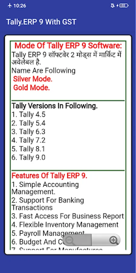 This App include Tally.erp 9 GST eBook Material in hindi.