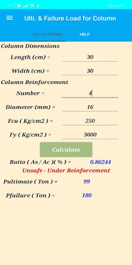 5 - Calculate the Ultimate & Failure Load of Columns.