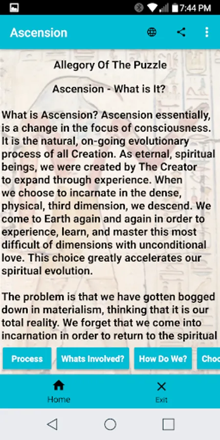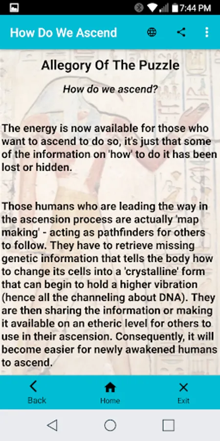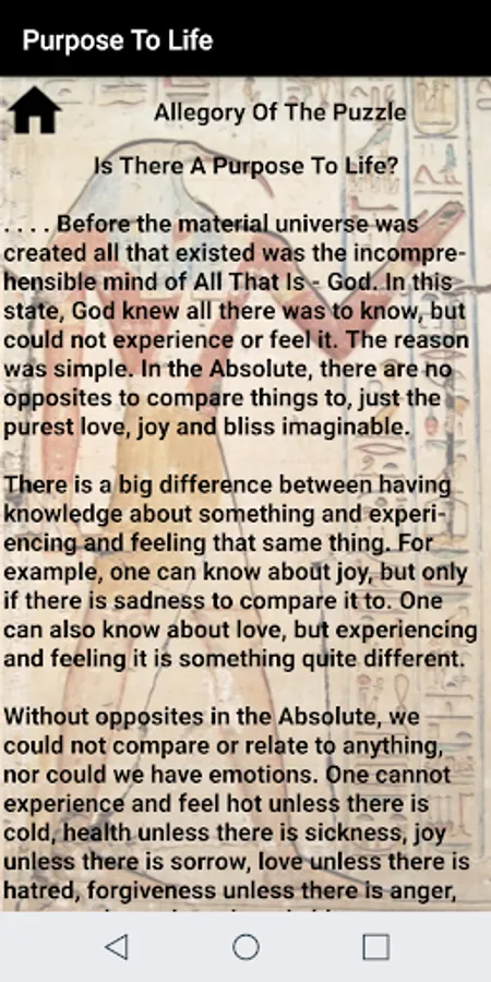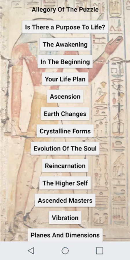 The allegory puzzle application takes you on a journey to understand yourself, your place in the universe, and the progression of the soul. The Allegory app is filled with information about the esoteric that includes life, the soul, creation, evolution of the soul, ascension, reincarnation and much more. You will get a better understanding of these subjects within the app.