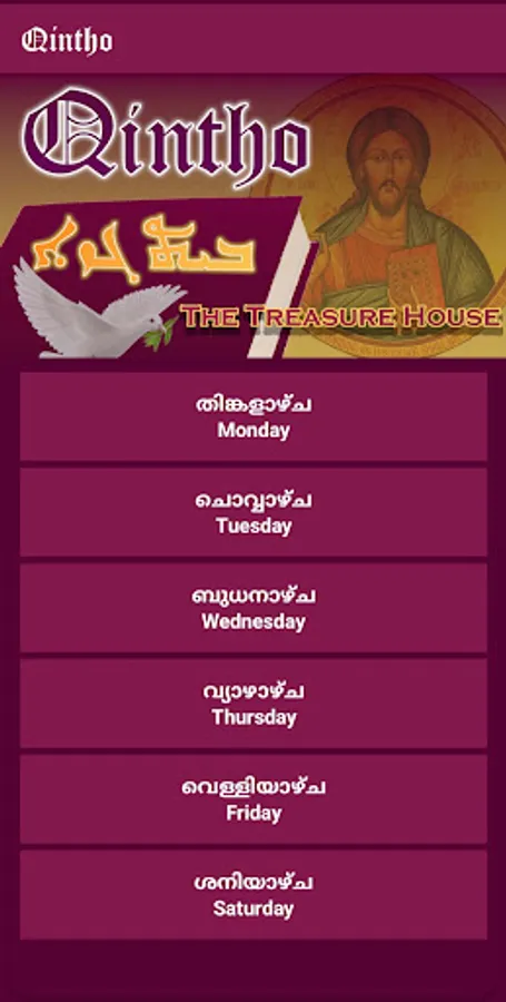 Qintho is an app developed for the study and quick reference of the liturgical Songs of the Malankara Orthodox Church. The songs are categorized into different sections which helps one to access a particular song easily .