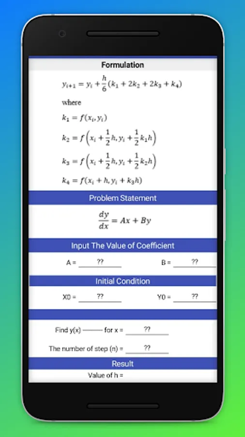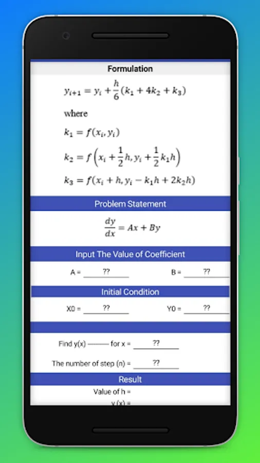 This apps allows us to the certain ordinary differential equations numerically using Euler's method, Heun's method and Runge-Kutta method