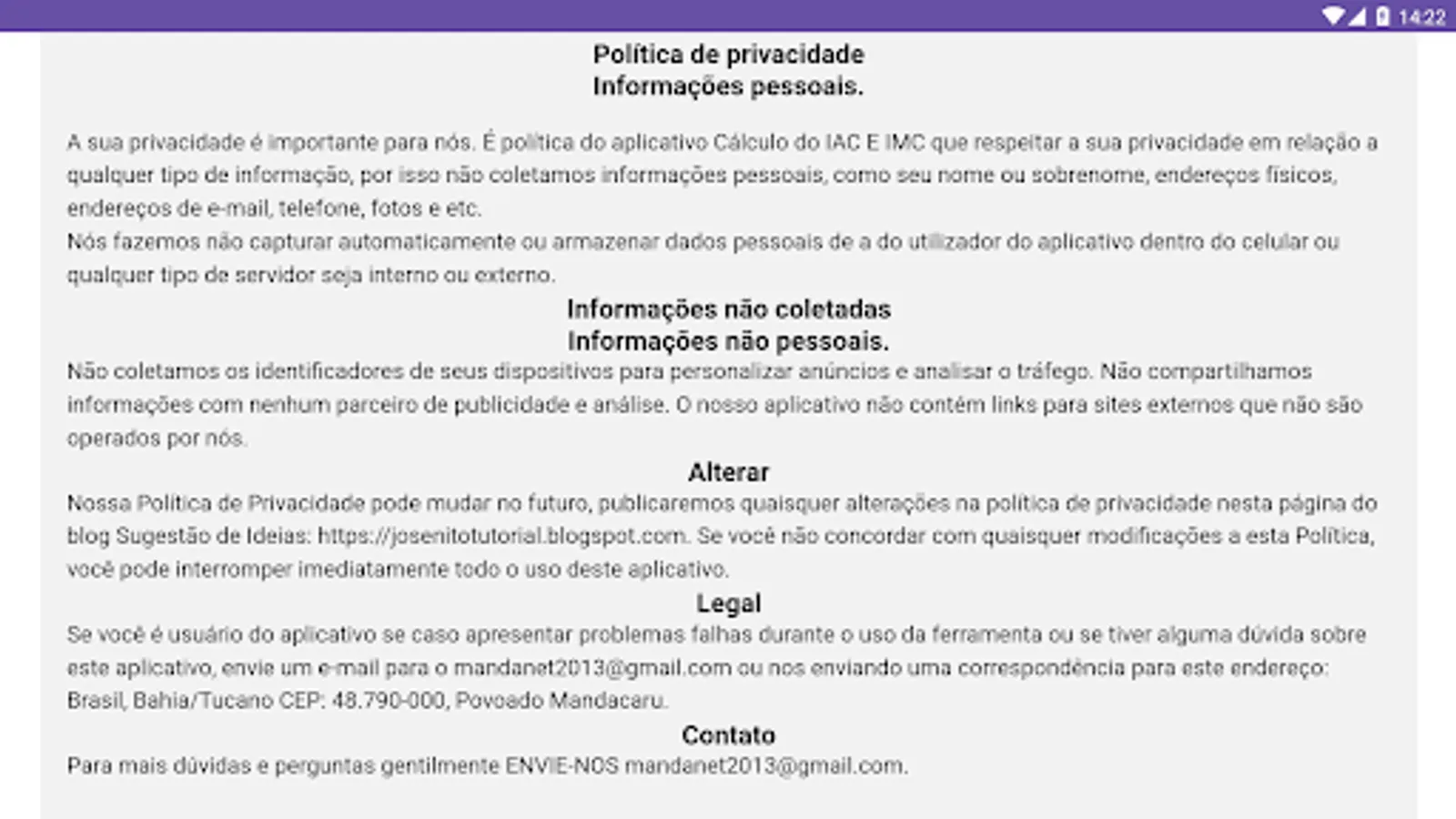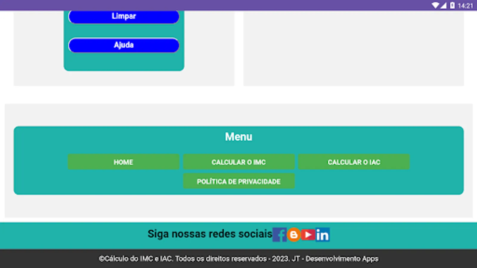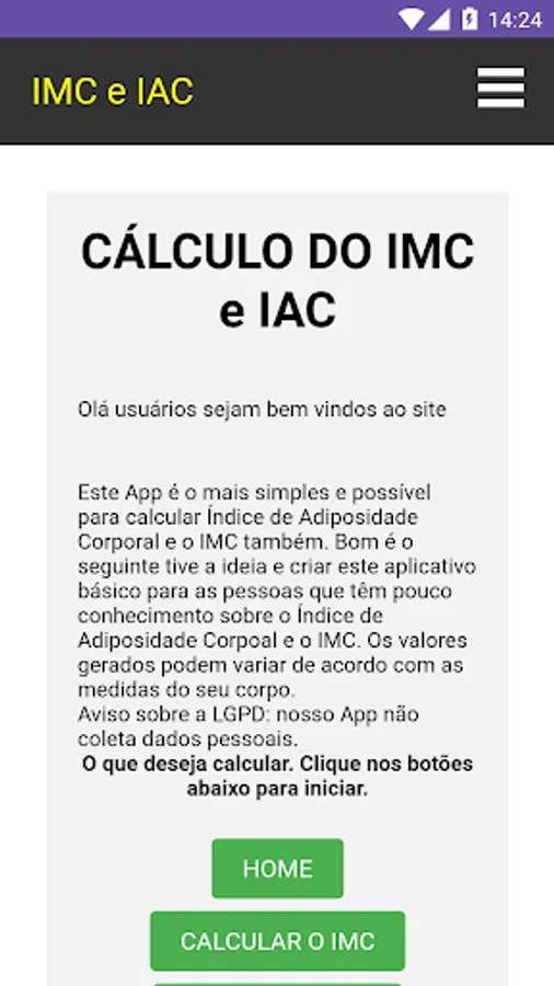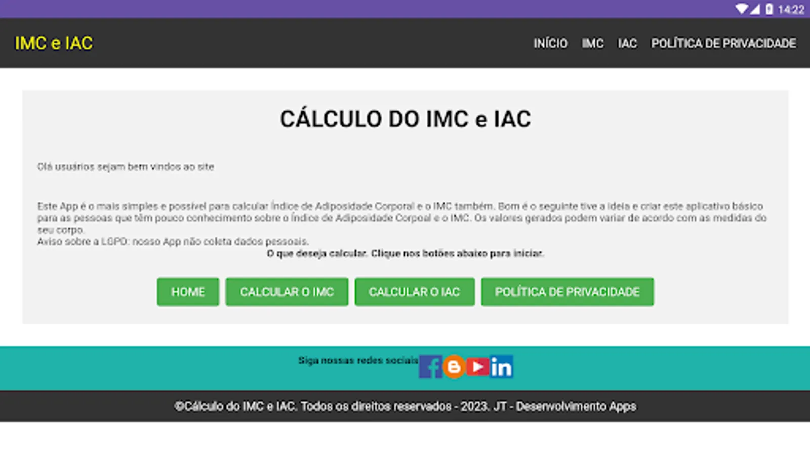 This app calculates a person's body adiposity index (BFI) according to their height and hip circumference. With it you can calculate your IAC and BMI, that is, you know if you are above your ideal weight.